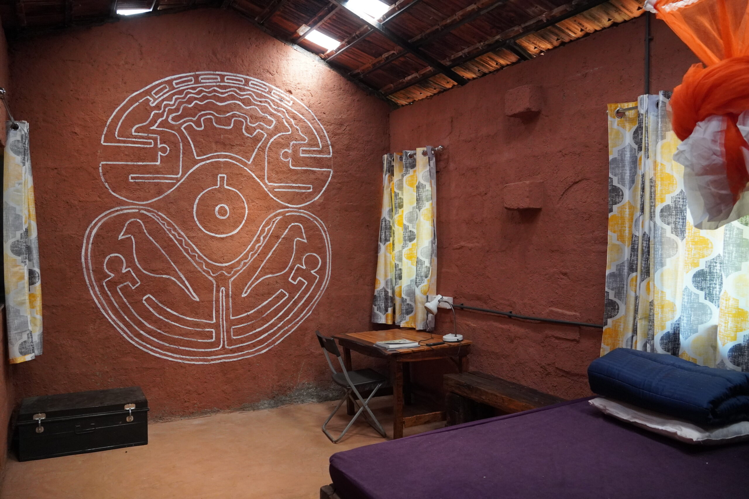 - Hand drawn murals inspired from Ratnagiri geoglyphs give a mystic vibe.