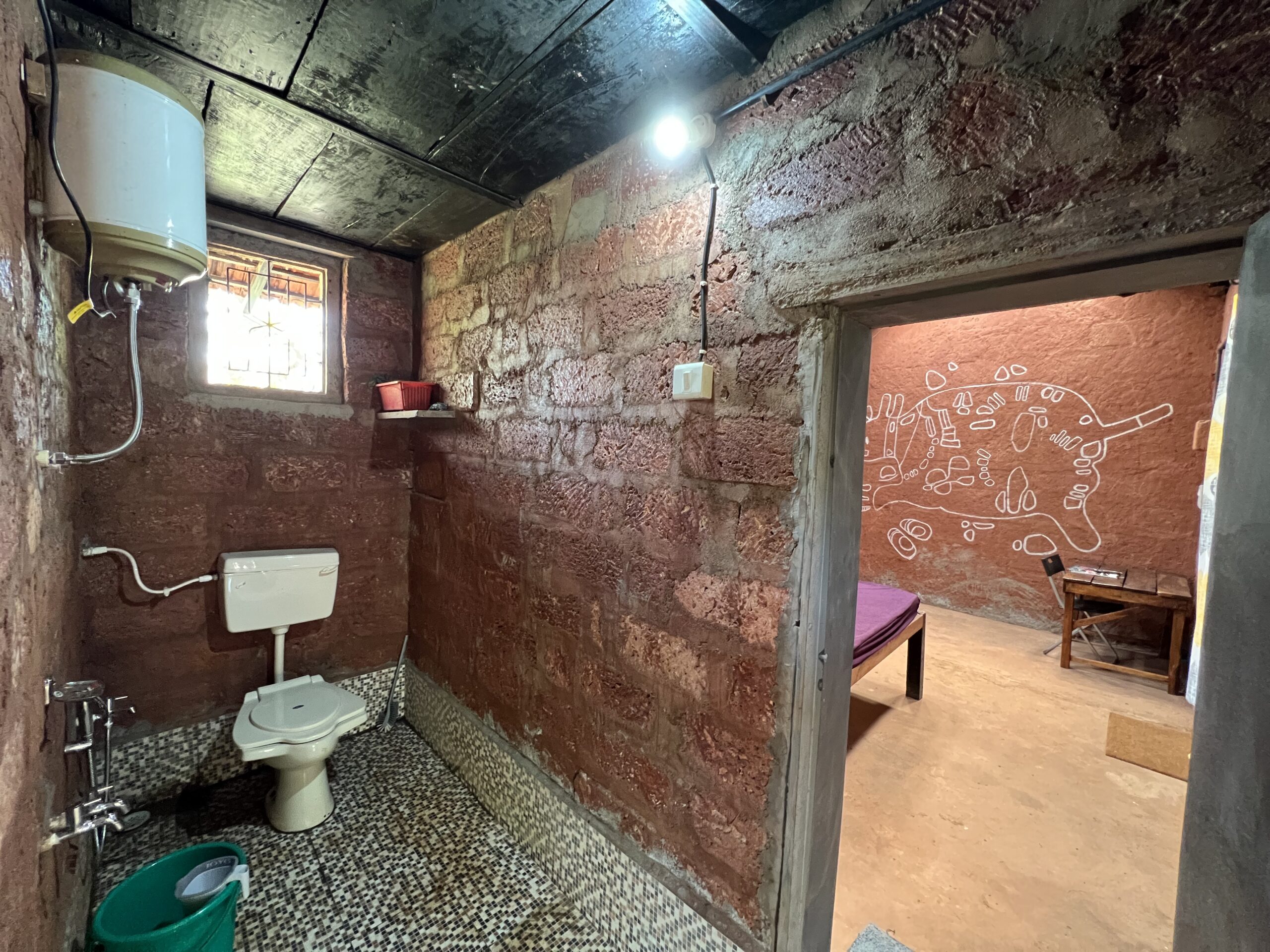- Naturally cool, thoughtfully built – Laterite stone walls and mud plaster ensures no air conditioning is needed.